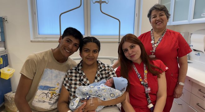 A las 11:37 horas de hoy 1 de enero, Camila Rojas Pasten y su pareja Vicente Torrejón dieron la bienvenida a su hijo Demián Santino, quien llegó al mundo con 3.315 gramos y 48 cm de ternura, siendo así el primer bebé nacido en nuestro hospital de este 2026.