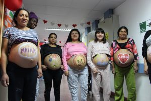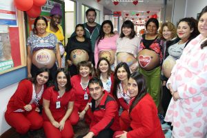 Las matronas y matrones del establecimiento de salud quisieron poner en el centro de su celebración a los pacientes, por lo que decidieron organizar una actividad en la cual las madres embarazadas pudieron expresar su sentimiento pintando sus vientres.